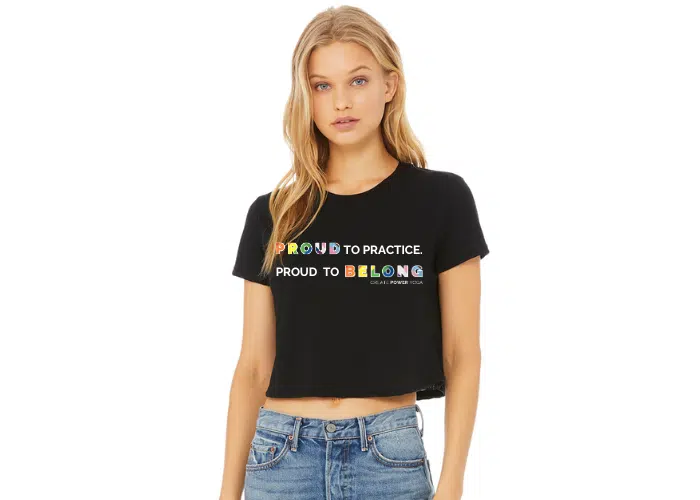 Get ready for Pride month with this Proud to Belong crop T. All proceeds from our 2026 Pride merch go to Youth Pride RI.