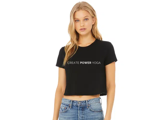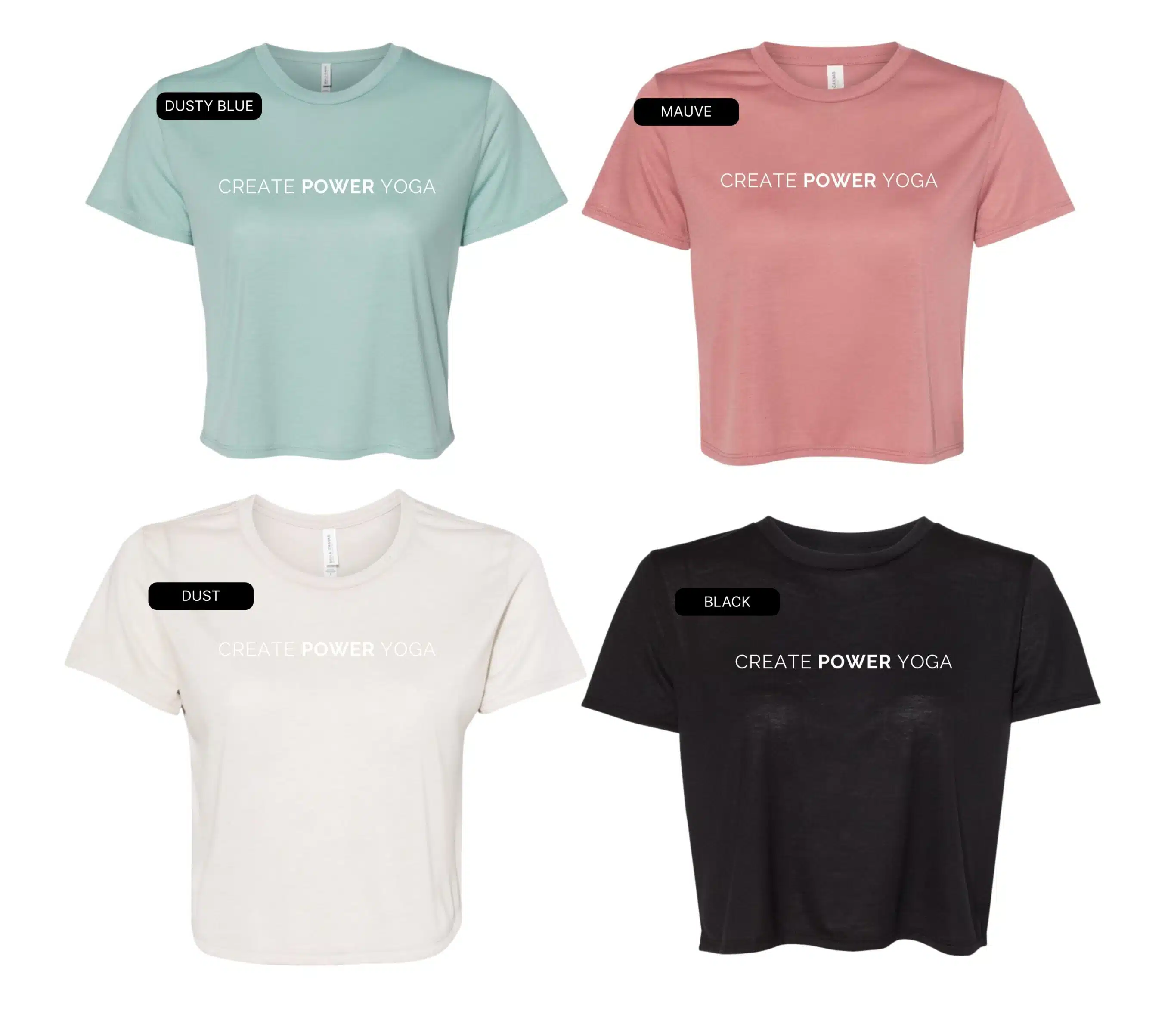 The crop is back by popular demand, with our classic Create Power Yoga logo! This new crop is soft and flowy.