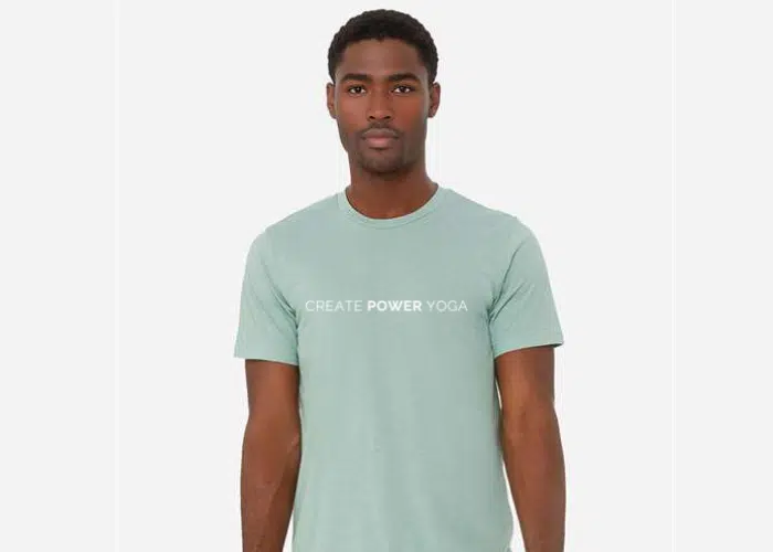 You’ve now found the staple t-shirt of your wardrobe. This soft triblend T is soft and comfy, and screen printed with our classic Create Power Yoga logo. The double stitching on the neckline and sleeves add more durability to what is sure to be a favorite!