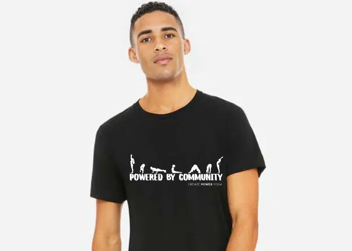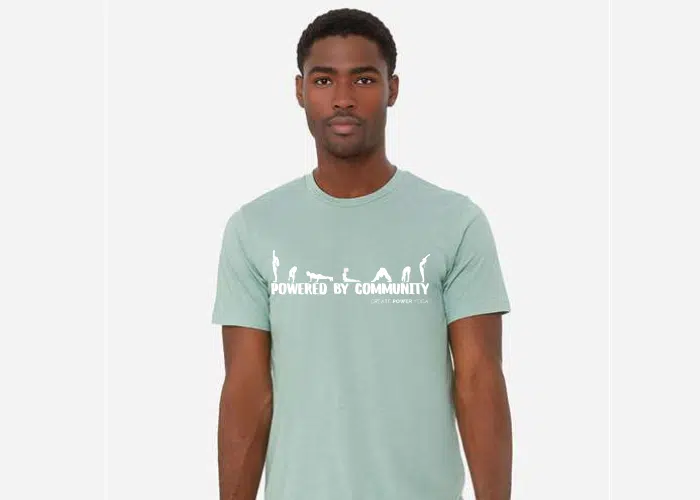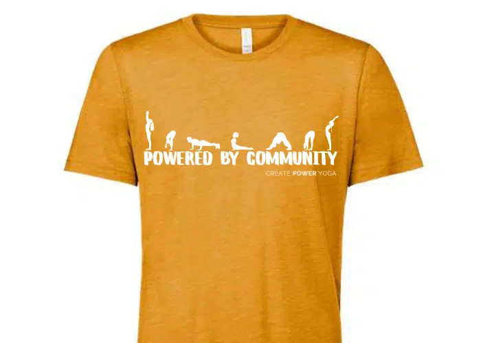 This soft triblend T is soft and comfy, and screen printed with our classic Create Power Yoga logo. The double stitching on the neckline and sleeves add more durability to what is sure to be a favorite!